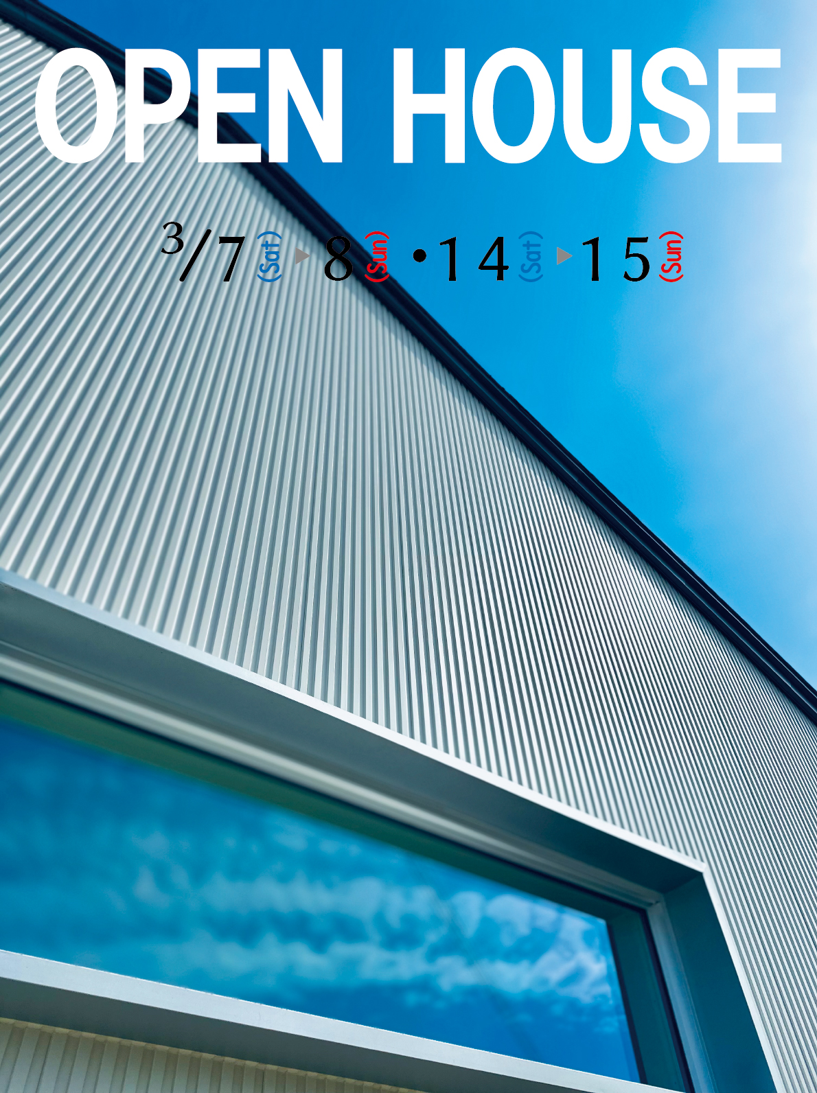 2026.02.28 オープンハウス開催! 「さんかくやねの家」オープンハウス開催します! 3/7日(土)・8日(日)・14日(土)・15日(日)を予定しております。 平日のご案内も可能です。 事前予約制となりますので、弊社ホームページよりお問い合わせお願いいたします。 皆様、是非お越し下さい。お待ちいたしております。